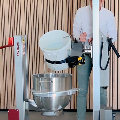 In production and logistics, a lot of materials are delivered in plastic buckets. In some instances, the contents of the buckets need to be emptied into a tub or poured into a pot or a funnel. Sometimes the funnel in question may be situated unusually high or the buckets may contain harmful materials, making it important to handle the buckets with the utmost care.