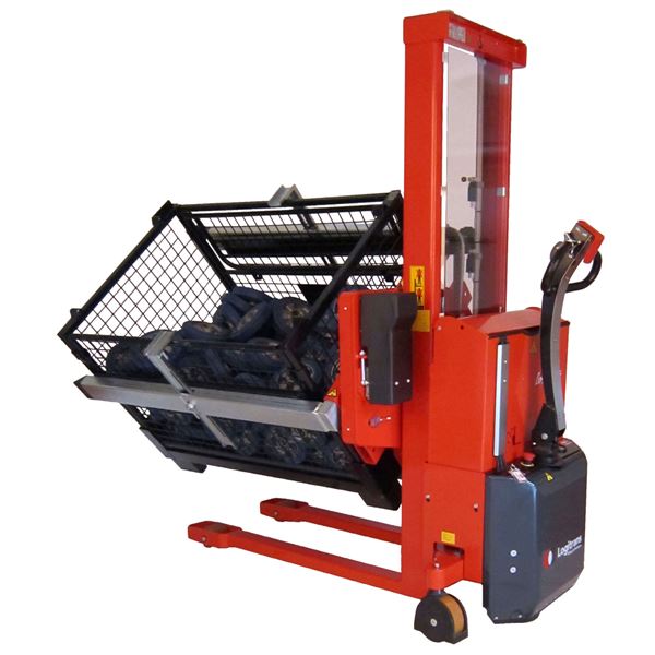 The Rotator with adjustable box holders can tilt crates and boxes so that you can reach the contents without stretching, bending and straining your back.