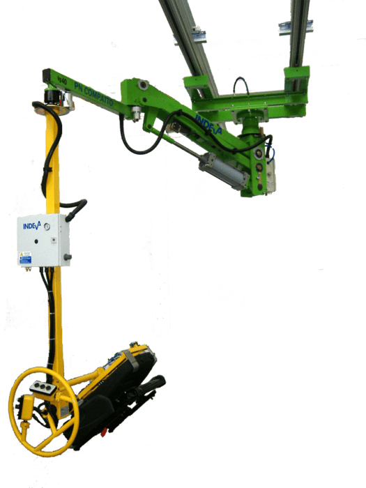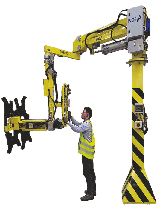 PN ERGO are pneumatic industrial manipulators with rigid vertical arm, suitable for handling large size loads, especially when loads are not reachable from the top (offset handling).