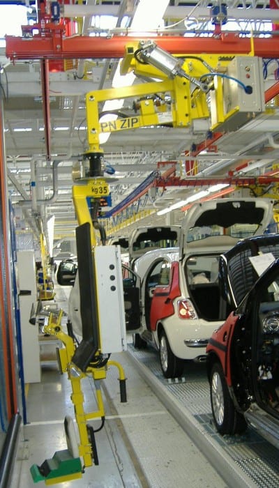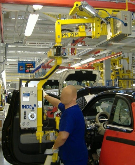 Pneumatic industrial manipulators, light and compact, suitable for applications with a short vertical excursion and quick work cycles.